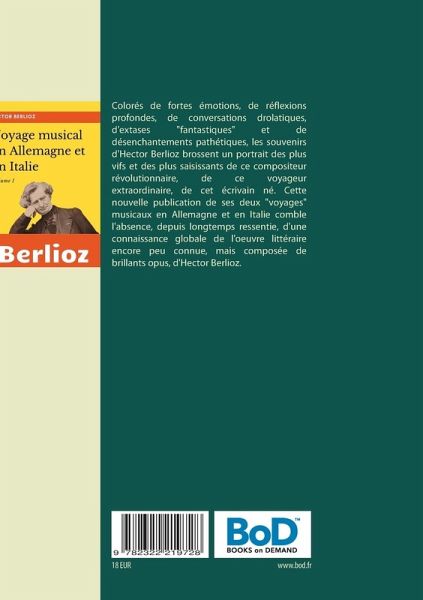 Colorés de fortes émotions, de réflexions profondes, de conversations drolatiques, d'extases "fantastiques" et de désenchantements pathétiques, les souvenirs d'Hector Berlioz brossent un portrait des plus vifs et des plus saisissants de ce compositeur révolutionnaire, de ce voyageur extraordinaire, de cet écrivain né. Cette nouvelle publication de ses deux "voyages" musicaux en Allemagne et en Italie comble l'absence, depuis longtemps ressentie, d'une connaissance globale de l'oeuvre littéraire encore peu connue, mais composée de brillants opus, d'Hector Berlioz.