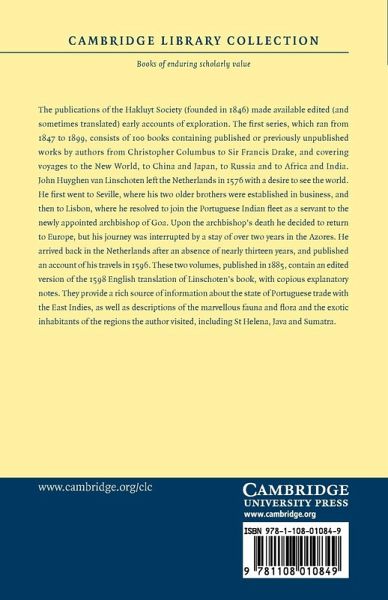 The publications of the Hakluyt Society (founded in 1846) made available edited (and sometimes translated) early accounts of exploration. The first series, which ran from 1847 to 1899, consists of 100 books containing published or previously unpublished works by authors from Christopher Columbus to Sir Francis Drake, and covering voyages to the New World, to China and Japan, to Russia and to Africa and India. This account of the East Indian travels of John Huyghen van Linschoten, originally published in the Netherlands in 1596 and translated into English in 1598, was published by the society…mehr