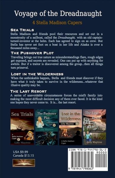 Here is the story of how Stella Madison becomes committed (in more ways than one) to a rag-tag group of misfits who decide to pool their resources and make a run for an abandoned lodge in Alaska. A place where it is rumored that seniors do not have to pay taxes and it is possible to survive completely off the land, even if they have no income at all. At the very least, they might fare better than living in the city, where each has to fend for themselves. Times being what they are. The only real expense is getting there. However, one of their group is acquainted with an old captain-turned-inventor who lives out in the bay on a monstrosity of a sailboat called the Dreadnaught. And while it hasn't been out of the harbor in years, it does fall within their budget to charter it. That is, if they skip the extra expense of a crew and all sign on as hands. Except Stella has never been out on a boat in her life...