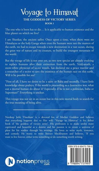The one who is born has to die... Is it applicable to human existence and the blue planet on which we live? I am Shankar, the ancient sailor. Once upon a time, when there were no Himalayas or the holy Ganga when even the humans were not the masters of the earth, we had to escape towards a new destination in a vast ocean, during the great war of nature and its creature, to build the youngest mountain of the world. But the voyage of life is not over yet, as two new species are already evolving to replace humans after their extinction from the earth. Vaidyanath, a snow-white physician of secret woods, has declared me a peace warrior and a researcher of a secret to save the existence of the human race on this earth. Will it be possible for me? "First of all, I have no desire to be a saint or Baba and secondly, I have little knowledge about pralaya. If the world is proceeding to a destructive war, what can a mortal human do about it? Especially, if he is not a politician, baba or Superman?" Everything is unclear. This voyage was not set in an ocean but in this new mortal body to search for the true meaning of being alive.