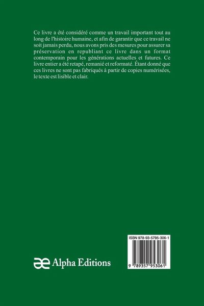 Voyages en Sibérie, un livre classique, a été considéré comme important tout au long de l'histoire de l'humanité, et pour que cet ouvrage ne soit jamais oublié, chez Alpha Editions, nous avons fait des efforts pour sa préservation en rééditant ce livre dans un format moderne pour les générations présentes et futures. Tout ce livre a été reformaté, retapé et conçu. Ces livres ne sont pas constitués de copies numérisées de leur ¿uvre originale et le texte est donc clair et lisible.