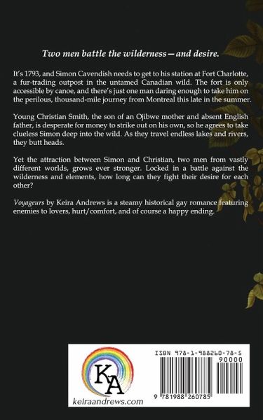 Two men battle the wilderness-and desire. It's 1793, and Simon Cavendish needs to get to his station at Fort Charlotte, a fur-trading outpost in the untamed Canadian wild. The fort is only accessible by canoe, and there's just one man daring enough to take him on the perilous, thousand-mile journey from Montreal this late in the summer. Young Christian Smith, the son of an Ojibwe mother and absent English father, is desperate for money to strike out on his own, so he agrees to take clueless Simon deep into the wild. As they travel endless lakes and rivers, they butt heads. Yet the attraction between Simon and Christian, two men from vastly different worlds, grows ever stronger. Locked in a battle against the wilderness and elements, how long can they fight their desire for each other? Voyageurs by Keira Andrews is a steamy historical gay romance free read featuring enemies to lovers, hurt/comfort, and of course a happy ending.