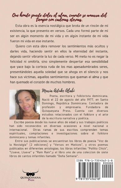 Esta obra es la esencia nostálgica que brota del rincón de mi existencia, las que presento en versos los que quizás muchos ojos leerán y al hacerlo no verán, mas mi voz gritara aunque quizás no se oiga, tal vez porque soy la simple lagrima que comienza a recorrer a ciegas y en la oscuridad los senderos de una faz desconocida. En cada uno de estos poemas me encuentro, porque cada uno formo parte de mi ser en algún momento de mi vida y en algún instante de mi vida fueron mi vida en ese instante. Quiero con esta obra remover los sentimientos más ocultos y darles vida, haciendo sentir en ellos la eternidad del instante, dejando sentir vibrante las luces de cada verso, casi cegante, expuestos sobre papel, tal vez tímidos y temerosos de que los ojos no los miren y las almas no los sientan. Voz de la nostalgia, tal vez no sea más que la migración de mi vida a la muerte, hacia tristes pasiones posiblemente absurdas, ya que evaden las finalidades de los hombres; mi meta no es negar la felicidad ni omitirla, sino simplemente despertar esa sensibilidad que yace bajo la corteza ruda de los mas apesadumbrados seres, presentándoles aquella soledad que se ahoga en el silencio y nos hace sus víctimas, aquellos sentimientos que queman el alma y que han quemado el corazón de muchos hombres. Este sin número de voces son ecos del alma con los que comparto sentimientos ajenos y propios que deseo hacer latir en otros corazones.