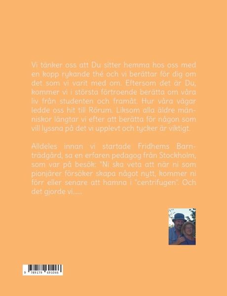 Vi tänker oss att Du sitter hemma hos oss med en kopp rykande thé och vi berättar för dig om det som vi varit med om. Eftersom det är Du, kommer vi i största förtroende berätta om våra liv från studenten och framåt. Hur våra vägar ledde oss hit till Rörum. Liksom alla äldre människor längtar vi efter att berätta för någon som vill lyssna på det vi upplevt och tycker är viktigt. Alldeles innan vi startade Fridhems Barnträdgård, sa en erfaren pedagog från Stockholm, som var på besök: "Ni ska veta att när ni som pionjärer försöker skapa något nytt, kommer ni förr eller senare att hamna i "centrifugen". Och det gjorde vi......