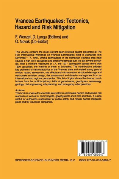 This volume contains the most relevant peer-reviewed papers presented at The First International Workshop on Vrancea Earthquakes, held in Bucharest on November 1-4, 1997. Strong earthquakes in the Romanian Vrancea area have caused a high toll of casualties and extensive damage over the last several centuries. With a moment magnitude of 7.4, the 1977 earthquake caused more than 1500 casualties, the majority of them in Bucharest. The contributions address key problems of seismotectonics of the Vrancea area and related strong ground motion, hazard assessment, site effects and microzonation, structural damage and earthquake resistant design, risk assessment and disaster management from an international and regional perspective. This list of topics shows the diverse contributions from the multidisciplinary fields of geosciences, geophysics, seismology, geology, civil engineering, city planning, and emergency relief practices. This book is of value for scientists interested in earthquake hazard and seismic risk research as well as for seismologists, geophysicists and Earth scientists. It is also useful for authorities responsible for public safety and natural hazard mitigation plans and for insurance companies.
