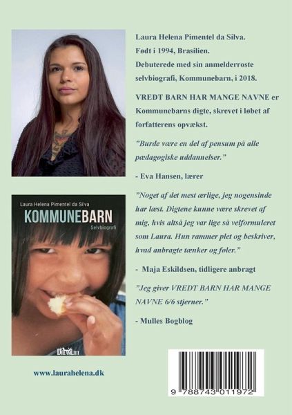 "Vredt barn har mange navne" er en ærlig og brutal digtsamling om en barndom, der ikke er for børn. Digtsamlingen består af digte, som forfatteren skrev gennem sin barndom og ungdom. Digte, som forfatterens anmelderroste bog Kommunebarn er baseret på. "Burde være en del af pensum på alle pædagogiske uddannelser." (Eva Hansen, lærer) JULEAFTEN JEG PLEJEDE AT GÅ I KIRKE ALDRIG OM SØNDAGEN MEN JULEAFTEN HÅND I HÅND MED MIN PLEJEFAMILIE JEG SÅ PRÆSTEN OG FOLKS MUNDE BEVÆGE SIG TIL SALMER MEN JEG HØRTE IKKE EFTER KUN TIL SANGEN SOM HANDLEDE OM JULEMANDEN KYSSEDE MOR FOR JEG SAVNEDE MIN OG SÅ TRASKEDE JEG HJEM MED PLEJEFORÆLDRE, PLEJESØSKENDE OG ANDRE FAMILIEMEDLEMMER SOM JEG HELLER IKKE VAR KNYTTET TIL MINE PLEJESØSKENDE GRÆD FORDI MAMA BEGRAVEDE SIN SAMVITTIGHED I JULEGAVER DE SYNTES DET VAR URETFÆRDIGT MINE GAVER VAR STØRRE END DERES DE BEKLAGEDE SIG TIL MIN PLEJEMORS FAR DER VAR FORKLÆDT SOM JULEMANDEN JEG HAVDE RØD KJOLE PÅ DENNE JUL VAR JEG KORTHÅRET ET ANDET ÅR VAR JEG LANGHÅRET MEN TRADITIONERNE VAR DE SAMME GRÅDEN VAR DEN SAMME OG DA JEG ENDELIG BEGYNDTE AT HOLDE JUL MED MIN BIOLOGISKE FAMILIE STOPPEDE GRÅDEN HELLER IKKE MIN SØSTER GRÆD OVER EN AF SINE UTALLIGE KÆRESTER DER HAVDE FORLADT HENDE SÅ HUN SATTE KURS MOD TOGSKINNERNE MENS MAMA HYLEDE OVER VI ALLE VAR SAMLET I SIN GALSKAB BILDTE HUN SIG SELV IND VI HAVDE DET SÅ DEJLIGT OG MIN BROR HAVDE IGEN DRUKKET FOR MEGET KLOKKEN ELLEVE SKRED HAN I BYEN FOR AT FEJRE JUL MED SINE VENNER DØREN SMÆKKEDE OG JEG STOD TILBAGE MED JULEGAVER KØBT PÅ UDSALG MENS JEG FØLTE MIG LIGE SÅ TOM SOM EMBALLAGEN