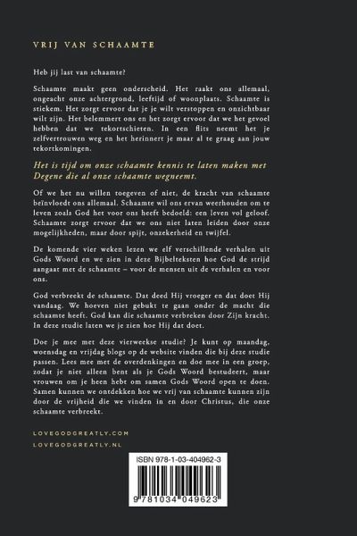 Heb jij last van schaamte? Schaamte maakt geen onderscheid. Het raakt ons allemaal, ongeacht onze achtergrond, leeftijd of woonplaats. Schaamte is stiekem. Het zorgt ervoor dat je je wilt verstoppen en onzichtbaar wilt zijn. Het belemmert ons en het zorgt ervoor dat we het gevoel hebben dat we tekortschieten. In een flits neemt het je zelfvertrouwen weg en het herinnert je maar al te graag aan jouw tekortkomingen. Het is tijd om onze schaamte kennis te laten maken met Degene die al onze schaamte wegneemt. Of we het nu willen toegeven of niet, de kracht van schaamte beïnvloedt ons allemaal. Schaamte wil ons ervan weerhouden om te leven zoals God het voor ons heeft bedoeld: een leven vol geloof. Schaamte zorgt ervoor dat we ons niet laten leiden door onze mogelijkheden, maar door spijt, onzekerheid en twijfel. De komende vier weken lezen we elf verschillende verhalen uit Gods Woord en we zien in deze Bijbelteksten hoe God de strijd aangaat met de schaamte - voor de mensen uit de verhalen en voor ons. God verbreekt de schaamte. Dat deed Hij vroeger en dat doet Hij vandaag. We hoeven niet gebukt te gaan onder de macht die schaamte heeft. God kan die schaamte verbreken door Zijn kracht. In deze studie laten we je zien hoe Hij dat doet. Doe je mee met deze vierweekse studie? Je kunt op maandag, woensdag en vrijdag blogs op de website vinden die bij deze studie passen. Lees mee met de overdenkingen en doe mee in een groep, zodat je niet alleen bent als je Gods Woord bestudeert, maar vrouwen om je heen hebt om samen Gods Woord open te doen. Samen kunnen we ontdekken hoe we vrij van schaamte kunnen zijn door de vrijheid die we vinden in en door Christus, die onze schaamte verbreekt.