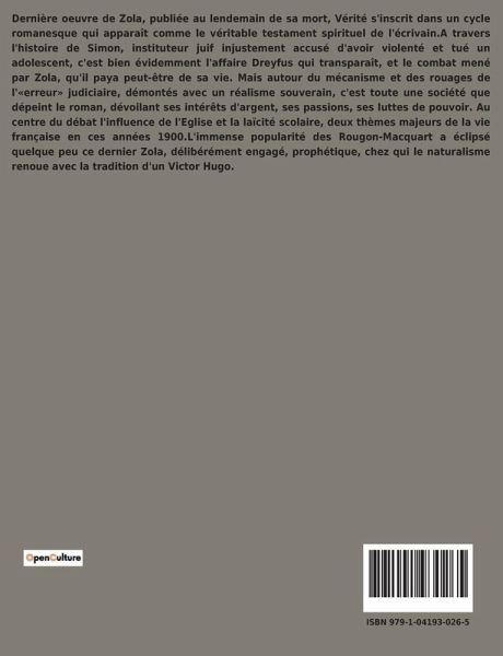Émile Zola nous transporte dans l'univers complexe de la Troisième République française, où les tensions politiques et sociales sont à leur paroxysme. ' Vérité Livre 2 ' s'inscrit dans une époque marquée par les luttes idéologiques et les bouleversements sociaux. Au cur de cette fresque se trouve Marc Froment, un instituteur déterminé à défendre la vérité et la justice face aux mensonges et à l'hypocrisie de la société. Le récit se déroule dans une petite ville de province, où l'affaire Simon, un scandale judiciaire inspiré de l'affaire Dreyfus, secoue les consciences et divise les habitants. Zola, à travers cette uvre, explore les thèmes de l'injustice, de l'antisémitisme et de la corruption, tout en mettant en lumière le rôle évolutif de l'éducation et de la laïcité dans la construction d'une société plus équitable. Le personnage de Marc Froment incarne la lutte pour la vérité et la raison, face à une société gangrenée par les préjugés et la manipulation. En développant une analyse minutieuse des mécanismes de pouvoir et des jeux d'influence, ce livre nous apprend à mieux comprendre les enjeux de l'époque et les défis auxquels sont confrontés ceux qui osent défier l'ordre établi. Par son écriture incisive et sa continuité sans faille, Zola nous offre une réflexion intemporelle sur la quête de justice et la force de l'intégrité.