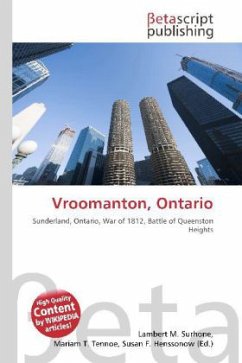 Please note that the content of this book primarily consists of articles available from Wikipedia or other free sources online. Vroomanton, Ontario is a ghost town located just north-west of Sunderland, Ontario in Brock Township, Ontario. The farming town was founded by Colonel James Vrooman, who was granted free land here in 1820 for his heroic service in the War of 1812. (The Vrooman family- namely brother Solomon Vrooman''s- participation in the Battle of Queenston Heights was vital in the victory for the British over the Americans, as the cannon at Vrooman''s Point kept over 4000 American troops from crossing the Niagara River). The son of Dutch settlers James was born here in 1796 at Queenston Heights. He is buried along with his 2 wives at the United Church cemetery at Conc. 7 and Sideroad 17A.