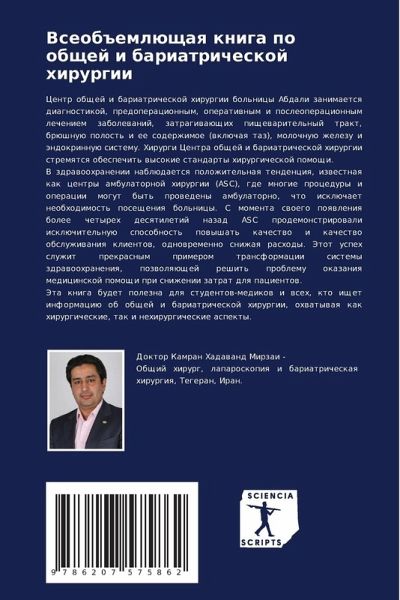 Centr obschej i bariatricheskoj hirurgii bol'nicy Abdali zanimaetsq diagnostikoj, predoperacionnym, operatiwnym i posleoperacionnym lecheniem zabolewanij, zatragiwaüschih pischewaritel'nyj trakt, brüshnuü polost' i ee soderzhimoe (wklüchaq taz), molochnuü zhelezu i ändokrinnuü sistemu. Hirurgi Centra obschej i bariatricheskoj hirurgii stremqtsq obespechit' wysokie standarty hirurgicheskoj pomoschi.V zdrawoohranenii nablüdaetsq polozhitel'naq tendenciq, izwestnaq kak centry ambulatornoj hirurgii (ASC), gde mnogie procedury i operacii mogut byt' prowedeny ambulatorno, chto isklüchaet neobhodimost' posescheniq bol'nicy. S momenta swoego poqwleniq bolee chetyreh desqtiletij nazad ASC prodemonstrirowali isklüchitel'nuü sposobnost' powyshat' kachestwo i kachestwo obsluzhiwaniq klientow, odnowremenno snizhaq rashody. Jetot uspeh sluzhit prekrasnym primerom transformacii sistemy zdrawoohraneniq, pozwolqüschej reshit' problemu okazaniq medicinskoj pomoschi pri snizhenii zatrat dlq pacientow.Jeta kniga budet polezna dlq studentow-medikow i wseh, kto ischet informaciü ob obschej i bariatricheskoj hirurgii, ohwatywaq kak hirurgicheskie, tak i nehirurgicheskie aspekty.