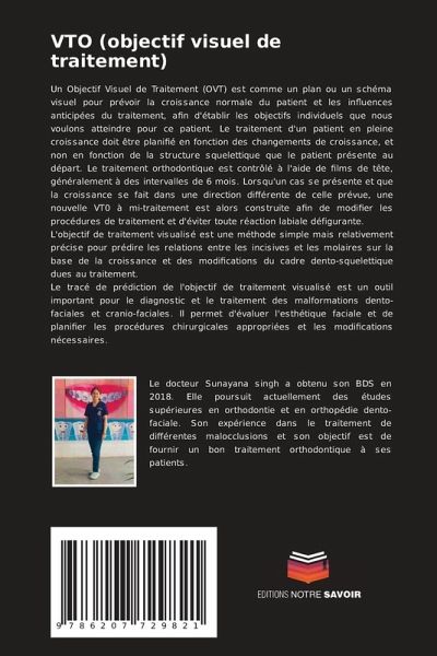 Un Objectif Visuel de Traitement (OVT) est comme un plan ou un schéma visuel pour prévoir la croissance normale du patient et les influences anticipées du traitement, afin d'établir les objectifs individuels que nous voulons atteindre pour ce patient. Le traitement d'un patient en pleine croissance doit être planifié en fonction des changements de croissance, et non en fonction de la structure squelettique que le patient présente au départ. Le traitement orthodontique est contrôlé à l'aide de films de tête, généralement à des intervalles de 6 mois. Lorsqu'un cas se présente et que la croissance se fait dans une direction différente de celle prévue, une nouvelle VT0 à mi-traitement est alors construite afin de modifier les procédures de traitement et d'éviter toute réaction labiale défigurante.L'objectif de traitement visualisé est une méthode simple mais relativement précise pour prédire les relations entre les incisives et les molaires sur la base de la croissance et des modifications du cadre dento-squelettique dues au traitement.Le tracé de prédiction de l'objectif de traitement visualisé est un outil important pour le diagnostic et le traitement des malformations dento-faciales et cranio-faciales. Il permet d'évaluer l'esthétique faciale et de planifier les procédures chirurgicales appropriées et les modifications nécessaires.