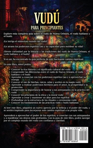Explore esta completa guía sobre el vudú de Nueva Orleans, el vudú haitiano y el hudú. ¿Le intriga el misterioso mundo del vudú? ¿Le atraen los poderosos espíritus Lwa y su capacidad para moldear su vida? ¿Siente curiosidad por la historia y las tradiciones del vudú de Nueva Orleans, el vudú haitiano y el hudú? Si es así, ha encontrado la guía perfecta de este fascinante camino espiritual. En este libro, usted podrá:Conocer la rica historia y el significado cultural del vudú Comprender las diferencias entre el vudú de Nueva Orleans, el vudú haitiano y el hudú Aprender a conectar con los poderosos espíritus Lwa y a aprovechar su energía Conocer el uso de hierbas, raíces, velas y aceites en la magia vudú Aprender a realizar poderosos hechizos para el amor, la prosperidad y la protección Comprender la importancia de honrar a sus antepasados en la práctica del vudú Conocer los principios de la ética y la moral vudú Aprender a crear y mantener un altar para los espíritus Profundizar en la estructura de los rituales y ceremonias vudú Conocer los fundamentos de las prácticas vudú y hudú haitianas Al leer este libro, adquirirá un nuevo aprecio por la belleza y el poder del vudú, y se sentirá inspirado para incorporar este camino espiritual a su propia vida. Aprenderá a aprovechar el poder de los espíritus, a conectar con sus antepasados y a manifestar sus deseos más profundos. Con la guía de este libro, podrá navegar por el complejo mundo del vudú con confianza y claridad.