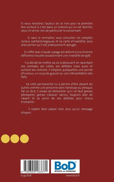 En effet Jean-Claude Lepage est atteint d'une énorme déficience visuelle occasionnant une invalidité de 95%.