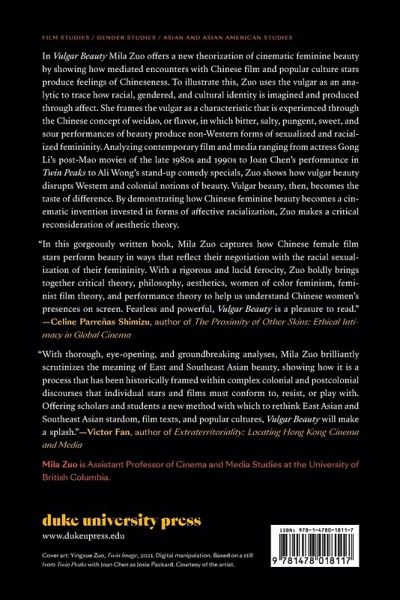 Mila Zuo offers a new theorization of cinematic feminine beauty by showing how mediated encounters with Chinese film and popular culture stars produce feelings of Chinese-ness.