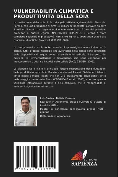 La coltivazione della soia è la principale attività agricola dello Stato del Paraná, con una produzione di circa 15 milioni di tonnellate, coltivate su oltre 5 milioni di ettari. La regione occidentale dello Stato è uno dei principali produttori di questo legume. Nel raccolto 2015-2016, il Paraná è stato campione nazionale di produttività, con 3.405 kg ha-1, soprattutto grazie alle condizioni climatiche favorevoli (PARANÁ, 2016).Le precipitazioni sono la fonte naturale di approvvigionamento idrico per le piante. Tutti i processi fisiologici che avvengono nella pianta sono influenzati dalla disponibilità di acqua, come l'assorbimento radicale, il trasporto dei nutrienti, la termoregolazione e l'idratazione, che sono essenziali per mantenere la struttura e l'attività delle cellule (TAIZ; ZEIGER, 2009).La disponibilità idrica è il principale fattore responsabile delle fluttuazioni della produttività agricola in Brasile e anche nel Paraná. Sebbene il bilancio idrico medio annuale indichi che non vi è praticamente alcun deficit idrico nella maggior parte dello Stato (CAVIGLIONE et al., 2000), vi è una grande variabilità interannuale durante il ciclo colturale, che è responsabile di variazioni significative nei raccolti.