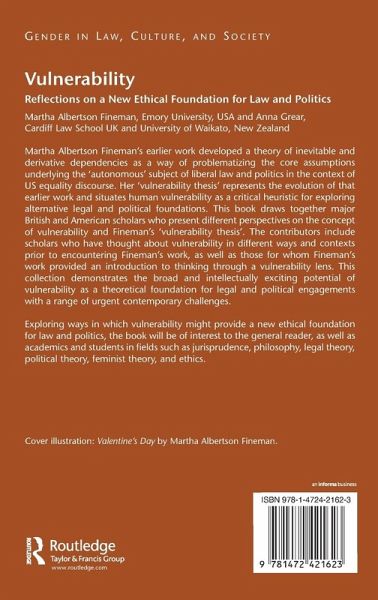 This book draws together major British and American scholars who present different perspectives on the concept of vulnerability and Fineman's 'vulnerability thesis'. The collection demonstrates the broad and intellectually exciting potential of vulnerability as a theoretical foundation for legal and political engagements with a range of urgent contemporary challenges. Exploring ways in which vulnerability might provide a new ethical foundation for law and politics, it is of interest to the general reader, as well as academics and students in fields such as jurisprudence, philosophy, legal theory, political theory, feminist theory, and ethics.