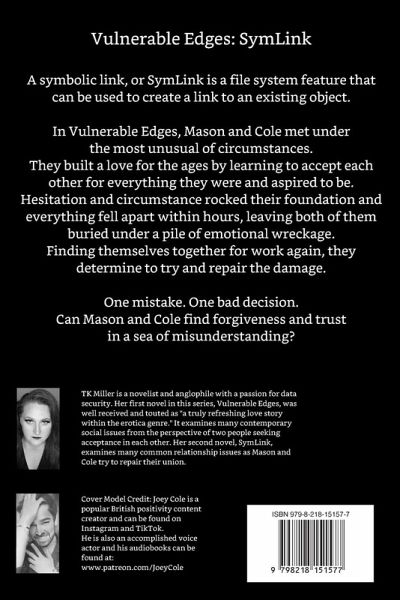 SymLink: A symbolic link, or SymLink is a file system feature that can be used to create a link to an existing object. In Vulnerable Edges, Mason and Cole met under the most unusual of circumstances. They built a love for the ages by learning to accept each other for everything they were and aspired to be. Hesitation and circumstance rocked their foundation and everything fell apart within hours leaving both of them buried under a pile of emotional wreckage. Finding themselves together for work again, they determine to try and repair the damage. Can they find the forgiveness necessary to overcome their past and build a brilliant future?