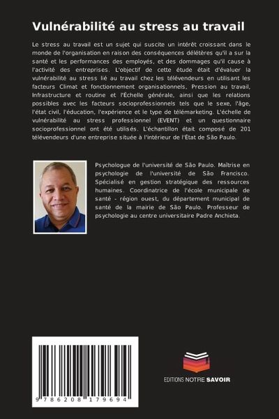 Le stress au travail est un sujet qui suscite un intérêt croissant dans le monde de l'organisation en raison des conséquences délétères qu'il a sur la santé et les performances des employés, et des dommages qu'il cause à l'activité des entreprises. L'objectif de cette étude était d'évaluer la vulnérabilité au stress lié au travail chez les télévendeurs en utilisant les facteurs Climat et fonctionnement organisationnels, Pression au travail, Infrastructure et routine et l'Échelle générale, ainsi que les relations possibles avec les facteurs socioprofessionnels tels que le sexe, l'âge, l'état civil, l'éducation, l'expérience et le type de télémarketing. L'échelle de vulnérabilité au stress professionnel (EVENT) et un questionnaire socioprofessionnel ont été utilisés. L'échantillon était composé de 201 télévendeurs d'une entreprise située à l'intérieur de l'État de São Paulo.