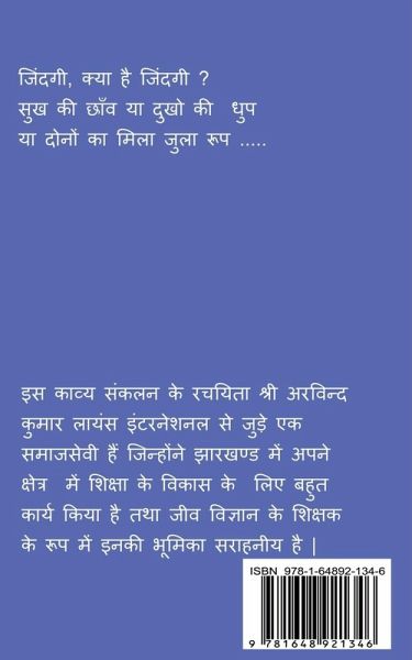 This poetry collection is a compilation of poems composed by Kumar Arbind, a resident of Rajdhanwar from Giridih District in Jharkhand in which he has expressed his expressions. There is suffering of middle class at the time of Corona's havoc, while there is also a reflection of his thinking about life. Five rupees will be donated to District Service Foundation for the development of education in the area of Lions District 322A for every copy of this book sold through Notion Press Store.