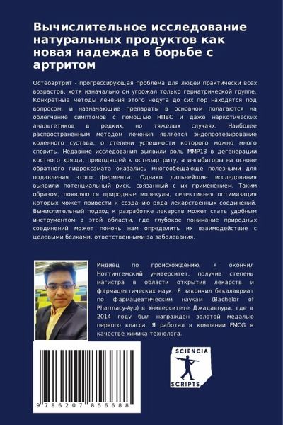 Osteoartrit - progressiruüschaq problema dlq lüdej prakticheski wseh wozrastow, hotq iznachal'no on ugrozhal tol'ko geriatricheskoj gruppe. Konkretnye metody lecheniq ätogo neduga do sih por nahodqtsq pod woprosom, i naznachaüschie preparaty w osnownom polagaütsq na oblegchenie simptomow s pomosch'ü NPVS i dazhe narkoticheskih anal'getikow w redkih, no tqzhelyh sluchaqh. Naibolee rasprostranennym metodom lecheniq qwlqetsq ändoprotezirowanie kolennogo sustawa, o stepeni uspeshnosti kotorogo mozhno mnogo sporit'. Nedawnie issledowaniq wyqwili rol' MMP13 w degeneracii kostnogo hrqscha, priwodqschej k osteoartritu, a ingibitory na osnowe obratnogo gidroxamata okazalis' mnogoobeschaüsche poleznymi dlq podawleniq ätogo fermenta. Odnako dal'nejshie issledowaniq wyqwili potencial'nyj risk, swqzannyj s ih primeneniem. Takim obrazom, poqwlqütsq prirodnye molekuly, selektiwnaq optimizaciq kotoryh mozhet priwesti k sozdaniü rqda lekarstwennyh soedinenij. Vychislitel'nyj podhod k razrabotke lekarstw mozhet stat' udobnym instrumentom w ätoj oblasti, gde glubokoe ponimanie prirodnyh soedinenij mozhet pomoch' nam opredelit' ih wzaimodejstwie s celewymi belkami, otwetstwennymi za zabolewaniq.