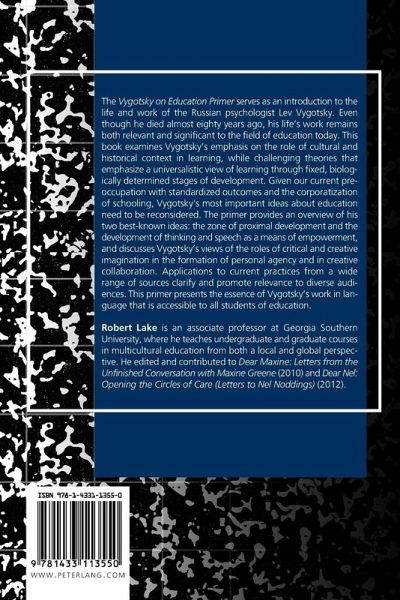 The Vygotsky on Education Primer serves as an introduction to the life and work of the Russian psychologist Lev Vygotsky. Even though he died almost eighty years ago, his life's work remains both relevant and significant to the field of education today. This book examines Vygotsky's emphasis on the role of cultural and historical context in learning, while challenging theories that emphasize a universalistic view of learning through fixed, biologically determined stages of development. Given our current preoccupation with standardized outcomes and the corporatization of schooling, Vygotsky's most important ideas about education need to be reconsidered. The primer provides an overview of his two best-known ideas: the zone of proximal development and the development of thinking and speech as a means of empowerment, and discusses Vygotsky's views of the roles of critical and creative imagination in the formation of personal agency and in creative collaboration. Applications to current practices from a wide range of sources clarify and promote relevance to diverse audiences. This primer presents the essence of Vygotsky's work in language that is accessible to all students of education.