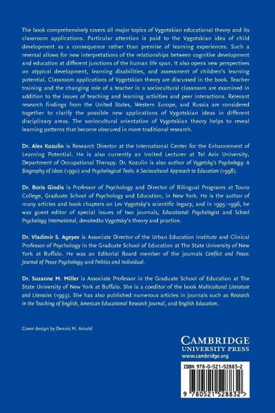 Innovative ideas in educational psychology, learning, and instruction, originally formulated by Russian psychologist and educator Lev Vygotsky, are currently enjoying unprecedented popularity in the U.S., Latin America, Europe, and Russia. An international team of scholarly contributors provides comprehensive coverage of all the main concepts of Vygotsky's sociocultural theory. They emphasize its importance for the understanding of child development, and propose specific classroom applications.