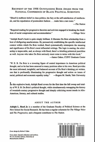 In this explosive book, Adolph Reed covers for the first time the full sweep and totality of W. E. B. Du Bois's political thought. Departing from existing scholarship, Reed locates the sources of Du Bois's thought in the cauldron of reform-minded intellectual life at the turn of the century, demonstrating that a commitment to liberal collectivism, an essentially Fabian socialism, remained pivotal in Du Bois's thought even as he embraced a range of political programs over time, including radical, Marxism. He remaps the history of twentieth-century progressive thought and sharply criticizing recent trends in Afro-American, literary, and cultural studies.