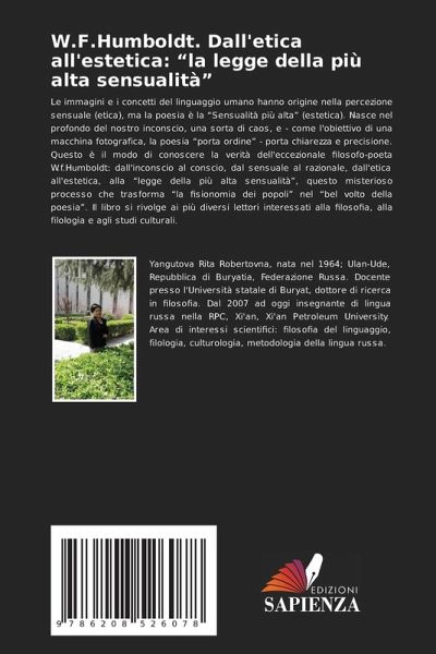 Le immagini e i concetti del linguaggio umano hanno origine nella percezione sensuale (etica), ma la poesia è la "Sensualità più alta" (estetica). Nasce nel profondo del nostro inconscio, una sorta di caos, e - come l'obiettivo di una macchina fotografica, la poesia "porta ordine" - porta chiarezza e precisione. Questo è il modo di conoscere la verità dell'eccezionale filosofo-poeta W.f.Humboldt: dall'inconscio al conscio, dal sensuale al razionale, dall'etica all'estetica, alla "legge della più alta sensualità", questo misterioso processo che trasforma "la fisionomia dei popoli" nel "bel volto della poesia". Il libro si rivolge ai più diversi lettori interessati alla filosofia, alla filologia e agli studi culturali.