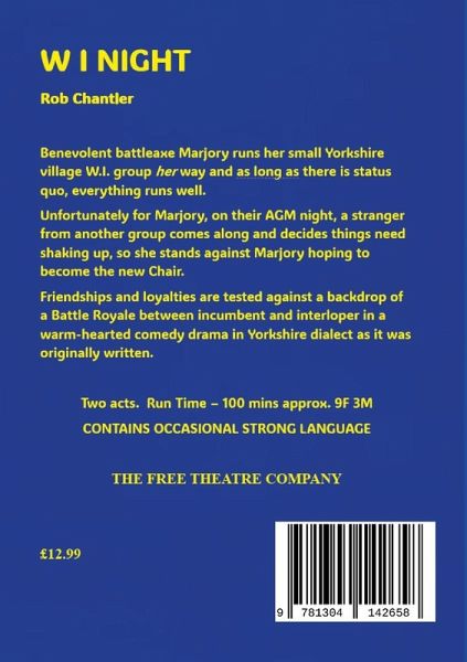 Benevolent dictator Marjory runs her small W I group her way and woe betide anyone who thinks differently. All is well until an interloper from another branch challenges her for the chairwoman's role on AGM night, testing the friendships and loyalties of the group to the core. Comedy-drama with occasional swearing.