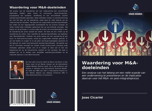Het proces van de waardering van een onderneming kan verschillende doeleinden hebben, zoals fusies en overnames, beursintroducties, prijsbepaling van aandelen, vereffening en kan verschillende soorten waarderingsmethoden gebruiken. Deze methoden moeten in overeenstemming zijn met het doel van de waardering, zodat deze de reële waarde van de onderneming kan bereiken. Het gebruik van ongeschikte waarderingsmethodes kan leiden tot een tegengestelde werkelijkheid die tot enorme verliezen zal leiden omdat deze methodes gebaseerd zijn op verschillende principes. Het begrip van de principes is cruciaal zodat de analist die verantwoordelijk is voor de waardering de juiste aanpak kan kiezen. Dit boek zal zich richten op de waardering van activa, meer specifiek de waarderingsmethoden van bedrijven voor M&A-doeleinden. Ondanks het grote belang van een waardering bij een Fusie- en Overname-transactie, wordt een ongeschikte methode gebruikt. Er zijn ook twijfels en vragen en er zijn geen voorzorgsmaatregelen genomen bij het gebruik van reeds lang bestaande waarderingsmethoden. Het gebrek aan tijd en informatie verergert de situatie omdat professionals jarenlang oude methoden gebruiken zonder zich af te vragen of deze wel of niet van toepassing zijn op de economische realiteit en het resultaat. Dit boek is bedoeld om na te denken over dergelijke waarderingsmethoden en de implicatie daarvan in een M&A transactie.