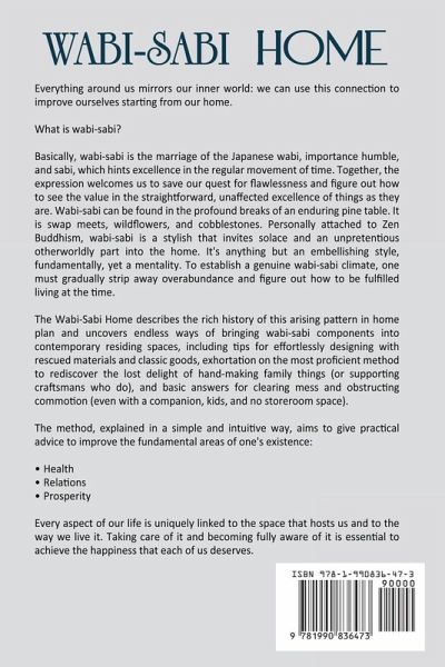 Everything around us mirrors our inner world: we can use this connection to improve ourselves starting from our home. What is wabi-sabi? Basically, wabi-sabi is the marriage of the Japanese wabi, importance humble, and sabi, which hints excellence in the regular movement of time. Together, the expression welcomes us to save our quest for flawlessness and figure out how to see the value in the straightforward, unaffected excellence of things as they are. Wabi-sabi can be found in the profound breaks of an enduring pine table. It is swap meets, wildflowers, and cobblestones. Personally attached to Zen Buddhism, wabi-sabi is a stylish that invites solace and an unpretentious otherworldly part into the home. It's anything but an embellishing style, fundamentally, yet a mentality. To establish a genuine wabi-sabi climate, one must gradually strip away overabundance and figure out how to be fulfilled living at the time. The Wabi-Sabi Home describes the rich history of this arising pattern in home plan and uncovers endless ways of bringing wabi-sabi components into contemporary residing spaces, including tips for effortlessly designing with rescued materials and classic goods, exhortation on the most proficient method to rediscover the lost delight of hand-making family things (or supporting craftsmans who do), and basic answers for clearing mess and obstructing commotion (even with a companion, kids, and no storeroom space). The method, explained in a simple and intuitive way, aims to give practical advice to improve the fundamental areas of one's existence:Health Relations Prosperity Every aspect of our life is uniquely linked to the space that hosts us and to the way we live it. Taking care of it and becoming fully aware of it is essential to achieve the happiness that each of us deserves.