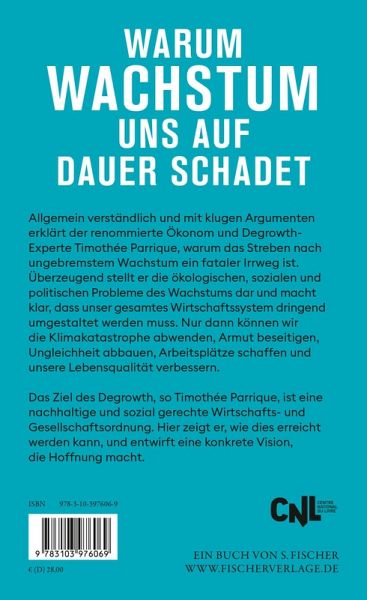 Überzeugend widerlegt Parrique die 12 wichtigsten Kritikpunkte an der Wachstumsbegrenzung, wie den Vorwurf, sie sei unwirksam, würde zu Armut führen und Verzicht bedeuten, oder sie sei innovationsfeindlich oder gar totalitär. Seine Vision ist eine nachhaltige und sozial gerechte Wirtschafts- und Gesellschaftsordnung, und er zeigt Wege auf, wie dies erreicht werden kann.