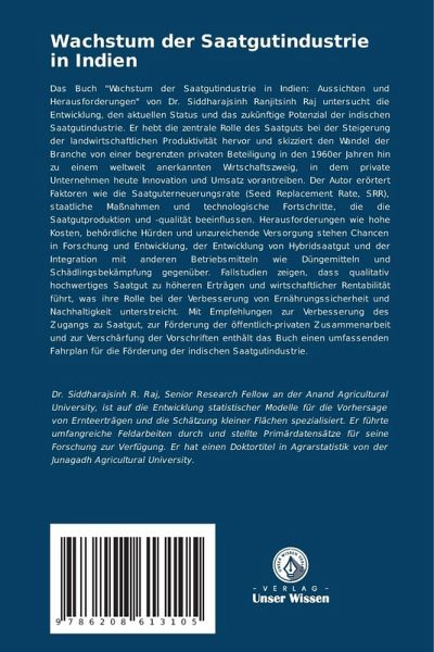 Das Buch "Wachstum der Saatgutindustrie in Indien: Aussichten und Herausforderungen" von Dr. Siddharajsinh Ranjitsinh Raj untersucht die Entwicklung, den aktuellen Status und das zukünftige Potenzial der indischen Saatgutindustrie. Er hebt die zentrale Rolle des Saatguts bei der Steigerung der landwirtschaftlichen Produktivität hervor und skizziert den Wandel der Branche von einer begrenzten privaten Beteiligung in den 1960er Jahren hin zu einem weltweit anerkannten Wirtschaftszweig, in dem private Unternehmen heute Innovation und Umsatz vorantreiben. Der Autor erörtert Faktoren wie die Saatguterneuerungsrate (Seed Replacement Rate, SRR), staatliche Maßnahmen und technologische Fortschritte, die die Saatgutproduktion und -qualität beeinflussen. Herausforderungen wie hohe Kosten, behördliche Hürden und unzureichende Versorgung stehen Chancen in Forschung und Entwicklung, der Entwicklung von Hybridsaatgut und der Integration mit anderen Betriebsmitteln wie Düngemitteln und Schädlingsbekämpfung gegenüber. Fallstudien zeigen, dass qualitativ hochwertiges Saatgut zu höheren Erträgen und wirtschaftlicher Rentabilität führt, was ihre Rolle bei der Verbesserung von Ernährungssicherheit und Nachhaltigkeit unterstreicht. Mit Empfehlungen zur Verbesserung des Zugangs zu Saatgut, zur Förderung der öffentlich-privaten Zusammenarbeit und zur Verschärfung der Vorschriften enthält das Buch einen umfassenden Fahrplan für die Förderung der indischen Saatgutindustrie.