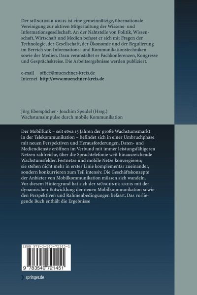 Der Mobilfunk - seit etwa 15 Jahren der große Wachstumsmarkt in der Telekommunikation - befindet sich in einer Umbruchphase mit neuen Perspektiven und Herausforderungen. Daten- und Mediendienste eröffnen im Verbund mit immer leistungsfähigeren Netzen zahlreiche, über die Sprachtelefonie weit hinausreichende Wachstumsfelder. Festnetze und mobile Netze konvergieren; sie stehen nicht mehr in erster Linie komplementär zueinander, sondern konkurrieren zum Teil intensiv. Die Geschäftskonzepte der Anbieter von Mobilkommunikation müssen sich wandeln. Vor diesem Hintergrund hat sich der MÜNCHNER KREIS mit der dynamischen Entwicklung der neuen Mobilkommunikation sowie den Perspektiven und Rahmenbedingungen befasst. Das vorliegende Buch enthält die Ergebnisse.