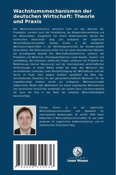 Der Wachstumsmechanismus bestimmt nicht nur das Volumen der Produktion, sondern auch die Preisbildung, die Einkommensverteilung und die Akkumulation. Ausgehend von einem Kaldorianischen Ansatz des technischen Fortschritts zeigt und analysiert der ungarische Wirtschaftswissenschaftler György Simon, Jr. die wichtigsten Wachstumsregularitäten in der Nachkriegswirtschaft der Bundesrepublik Deutschland. Die Untersuchung stützt sich auf einen theoretischen Rahmen, der grundlegende Aspekte des Wirtschaftsmechanismus umfasst, wie Produktion und Wachstum, Gleichgewichtspreise sowie Kapital-, Gewinn- und Lohnbildung. Die relevanten politischen Fragen umfassen die Probleme der Mobilisierung interner Ressourcen und der internationalen wirtschaftlichen Verflechtungen. In einem Modell erklärt der Autor das Wachstum des verarbeitenden Gewerbes unter Berücksichtigung der Wechselkurse und der Terms of Trade. Eine weitere Funktion spezifiziert die Rolle des verarbeitenden Gewerbes für das gesamtwirtschaftliche Wachstum. Für die angebotsseitige Analyse wurde ein endogenes Wachstumsmodell (allgemeines Modell oder Weltmodell) mit einem eingebauten Mechanismus des technischen Fortschritts verwendet, der sowohl Sach- und Humankapital als auch die Zeit in der Rolle der kreativen Wirtschaftstätigkeit berücksichtigt.