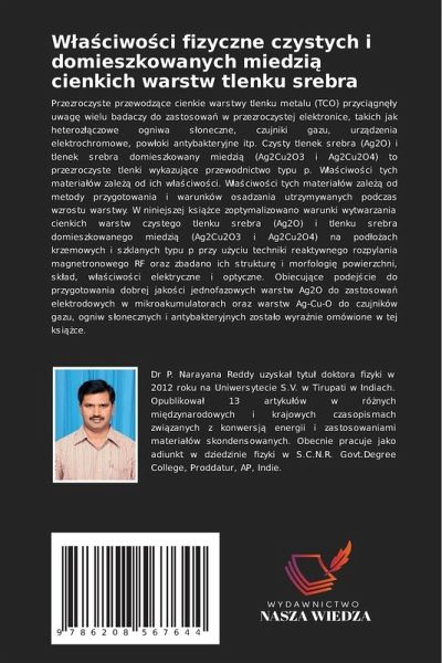 Przezroczyste przewodz¿ce cienkie warstwy tlenku metalu (TCO) przyci¿gn¿¿y uwag¿ wielu badaczy do zastosowä w przezroczystej elektronice, takich jak heteroz¿¿czowe ogniwa s¿oneczne, czujniki gazu, urz¿dzenia elektrochromowe, pow¿oki antybakteryjne itp. Czysty tlenek srebra (Ag2O) i tlenek srebra domieszkowany miedzi¿ (Ag2Cu2O3 i Ag2Cu2O4) to przezroczyste tlenki wykazuj¿ce przewodnictwo typu p. W¿äciwo¿ci tych materiäów zale¿¿ od ich w¿äciwo¿ci. W¿äciwo¿ci tych materiäów zale¿¿ od metody przygotowania i warunków osadzania utrzymywanych podczas wzrostu warstwy. W niniejszej ksi¿¿ce zoptymalizowano warunki wytwarzania cienkich warstw czystego tlenku srebra (Ag2O) i tlenku srebra domieszkowanego miedzi¿ (Ag2Cu2O3 i Ag2Cu2O4) na pod¿o¿ach krzemowych i szklanych typu p przy u¿yciu techniki reaktywnego rozpylania magnetronowego RF oraz zbadano ich struktur¿ i morfologi¿ powierzchni, sk¿ad, w¿äciwo¿ci elektryczne i optyczne. Obiecuj¿ce podej¿cie do przygotowania dobrej jako¿ci jednofazowych warstw Ag2O do zastosowä elektrodowych w mikroakumulatorach oraz warstw Ag-Cu-O do czujników gazu, ogniw s¿onecznych i antybakteryjnych zostäo wyränie omówione w tej ksi¿¿ce.