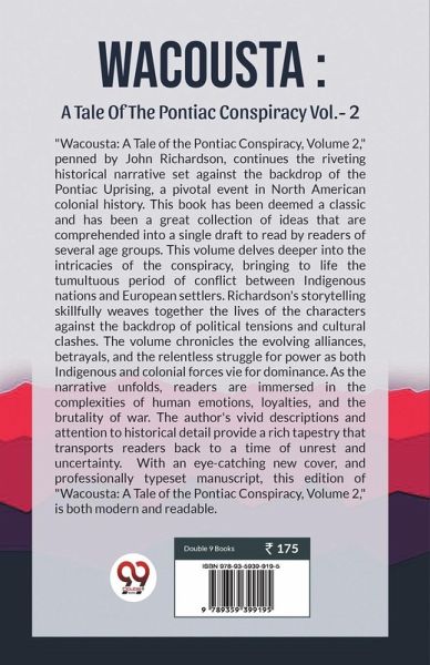 "Wacousta: A Tale of the Pontiac Conspiracy, Volume 2," penned by John Richardson, continues the riveting historical narrative set against the backdrop of the Pontiac Uprising, a pivotal event in North American colonial history. This book has been deemed a classic and has been a great collection of ideas that are comprehended into a single draft to read by readers of several age groups. This volume delves deeper into the intricacies of the conspiracy, bringing to life the tumultuous period of conflict between Indigenous nations and European settlers. Richardson's storytelling skillfully weaves together the lives of the characters against the backdrop of political tensions and cultural clashes. The volume chronicles the evolving alliances, betrayals, and the relentless struggle for power as both Indigenous and colonial forces vie for dominance. As the narrative unfolds, readers are immersed in the complexities of human emotions, loyalties, and the brutality of war. The author's vivid descriptions and attention to historical detail provide a rich tapestry that transports readers back to a time of unrest and uncertainty. With an eye-catching new cover, and professionally typeset manuscript, this edition of "Wacousta: A Tale of the Pontiac Conspiracy, Volume 2," is both modern and readable.