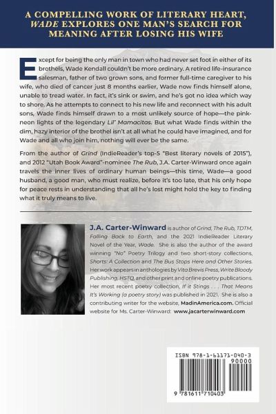 J.A. Carter-Winward is author of Grind, The Rub, TDTM, and Falling Back to Earth, and the award-winning "No" Poetry Trilogy. She's also the author of two short-story collections, Shorts: A Collection, The Bus Stops Here and Other Stories, and a successful, locally produced stage play, The Waiters, nominated "Best Local Event" in 2014. Her work appears in anthologies by Vita Brevis Press, Write Bloody Publishing, HSTQ, and several paper and online poetry publications. In 2014, Carter-Winward was voted "Best Local Artist" for her literary and visual art. J.A.'s upcoming releases in 2021 include: If It Stings... That Means It's Working (a poetry story), Work in Progress: Dialogues & Poems, and Killing Scott Lark: A Novel. Official website for Ms. Carter-Winward: www.jacarterwinward.com