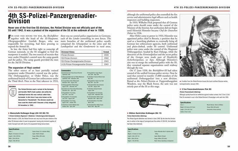 Illustrated with detailed artworks of SS tanks and their markings with exhaustive captions and specifications, Waffen-SS Divisions 1939â 45: The Essential Vehicle Identification Guide is the definitive study of the equipment and organization of Himmlerâ s armoured divisions.