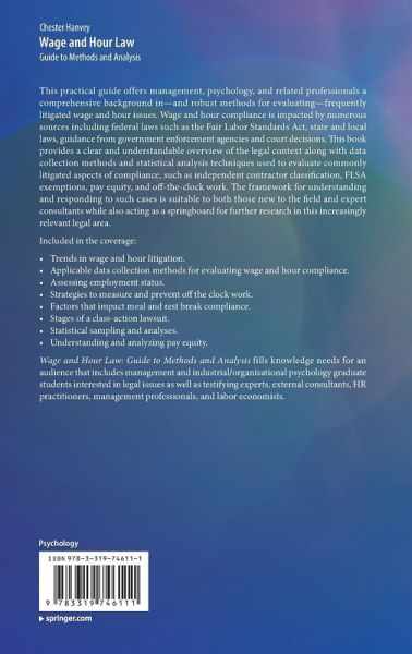 Wage and Hour Law: Guide to Methods and Analysis fills knowledge needs for an audience that includes management and industrial/organizational psychologygraduate students interested in legal issues as well as testifying experts, external consultants, HR practitioners, management professionals, and labor economists.