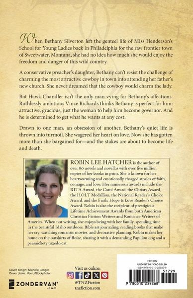 When Bethany Silverton left the genteel life of Miss Henderson's School for Young Ladies back in Philadelphia for the raw frontier town of Sweetwater, Montana, she had no idea how much she would enjoy the freedom and danger of this wild country. A conservative preacher's daughter, Bethany can't resist the challenge of charming the most attractive cowboy in town into attending her father's new church. She never dreamed that the cowboy would charm the lady. But Hawk Chandler isn't the only man vying for Bethany's affections. Ruthlessly ambitious Vince Richards thinks Bethany is perfect for him: attractive, gracious, just the woman to help him become governor. And he is determined to get what he wants at any cost. Drawn to one man, an obsession of another, Bethany's quiet life is thrown into turmoil. She wagered her heart on love. Now she has gotten more than she bargained for---and the stakes are about to become life and death.