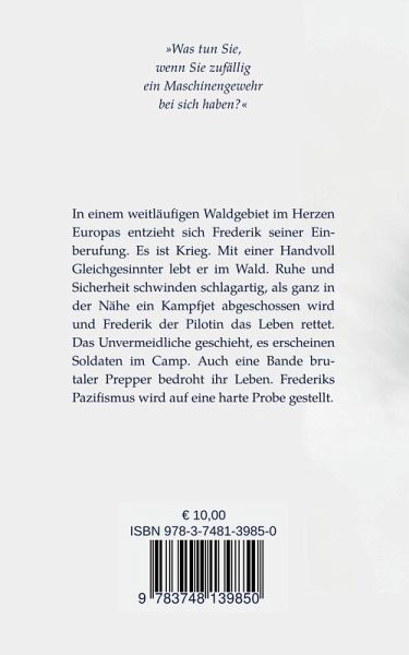 der Ruhe ist es vorbei, als er Luftkämpfe und einen Flugzeugabsturz beobachtet, eine folgenreiche…mehrIn seiner Novelle greift Peter Coon ein brisantes Thema auf: das Dilemma eines Pazifisten, der Gewalt vermeiden, aber Menschenleben schützen will. Sein Protagonist Frederik ist vor dem Krieg und der Einberufung geflüchtet und lebt mit seinen Freunden und Gleichgesinnten zurückgezogen im Wald. Mit der Ruhe ist es vorbei, als er Luftkämpfe und einen Flugzeugabsturz beobachtet, eine folgenreiche Entscheidung trifft und dadurch mitten ins Kriegsgeschehen hineingezogen wird.