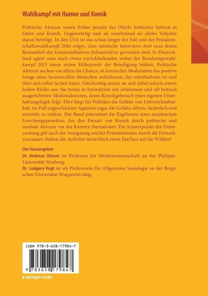 Waren politische Akteure früher primär das Objekt kritischer Spitzen in Satire und Komik, so sind sie gegenwärtig zunehmend als aktive Subjekte daran beteiligt. In den USA ist das schon länger der Fall und der Präsidentschaftswahlkampf 2016 zeigte, dass satirische Interviews dort zum festen Bestandteil der kommunikativen Infrastruktur geworden sind. In Deutschland agiert man noch etwas zurückhaltender, wobei der Bundestagswahlkampf 2013 einen ersten Höhepunkt der Beteiligung bildete. Politische Akteure suchen vor allem die Chance, in komischer Modulation das positive Image eines humorvollen Menschen aufzubauen, der unterhaltsam ist und über sich selbst lachen kann. Gleichzeitig setzen sie sich dabei jedoch einem hohen Risiko aus. Sie treten in Interaktion mit erfahrenen und oft kritisch ausgerichteten Medienakteuren, deren Komikgebrauch einer eigenen Unterhaltungslogik folgt. Dies birgt für Politiker die Gefahr von Unberechenbarkeit, im Fall ungeschickten Agierens sogar die Gefahr,albern, lächerlich und unseriös zu wirken. Der Band präsentiert die Ergebnisse eines empirischen Forschungsprojektes, das den Einsatz von Komik durch politische und mediale Akteure vor der Kamera thematisiert. Ein Schwerpunkt der Untersuchung gilt auch der Aneignung solcher Präsentationen durch die Fernsehzuschauer: Haben die Auftritte tatsächlich einen Einfluss auf die Wähler?