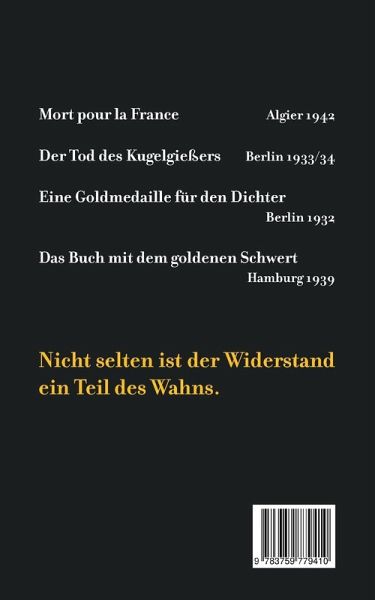 In der postdramatischen, auf originelle Regie und schauspielerischen Glanz gestellten Bühnenepoche lassen sich differenzierte politische Stoffe kaum noch vermitteln. Das Lese-Drama bietet einen Ausweg: Eine vorgestellte Bühne mit Leserinnen und Lesern, die konzentriert reflektierend den Dialogen folgen können. Die Lese-Dramen "Wahn und Widerstand" folgen dem Gedanken, dass politischer Widerstand oft Teil des Wahn ist, gegen den er sich richtet. Typisch dafür "Der Tod des Kugelgießers": 1934 wird der Ghostwriter des Vizekanzlers von Papen von den Nazis umgebracht, weil er in Papens Reden seine von ideologischem Wahn geprägten Widerstand geschürt hat. Das Lesestück "Mort pour la France" geht der Frage nach, warum die Franzosen 1942 in Algier sowohl einem getöteten Regierungschef als auch seinem Mörder das Ruhmesblatt "Gestorben für Frankreich" gewidmet haben. Gerhart Hauptmann erhält 1932 zu seinem 70. Geburtstag die preußische Staatsmedaille in Gold, die ihm gleich zweimal verliehen werden muss, nämlich von der rechtmäßigen Regierung und der im "Preußenschlag" okkupierten - und er schweigt dazu. Ein stellungsloser deutschnationaler Studienrat vertreibt in verspätet aufklärerischer Absicht Hitlers zum 50. Geburtstag präsentierte Prachtausgabe von "Mein Kampf" (das "Buch mit dem goldenen Schwert"). Konflikte, Tragödien, Komödien - das kann auch ein Lese-Drama bieten.