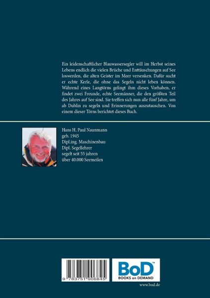 Ein leidenschaftlicher Blauwassersegler will im Herbst seines Lebens endlich die vielen Brüche und Enttäuschungen auf See loswerden, die alten Geister im Meer versenken. Dafür sucht er echte Kerle, die ohne das Segeln nicht leben können. Während eines Langtörns gelingt ihm dieses Vorhaben, er findet zwei Freunde, echte Seemänner, die den größten Teil des Jahres auf See sind. Sie treffen sich nun alle fünf Jahre, um ab Dublin zu segeln und Erinnerungen auszutauschen. Von einem dieser Törns berichtet dieses Buch.