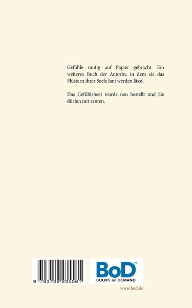 Gefühle mutig auf Papier gebracht. Ein weiteres Buch der Autorin, in dem sie das Flüstern ihrer Seele laut werden lässt. Das Gefühlsbeet wurde neu bestellt und Sie dürfen miternten.