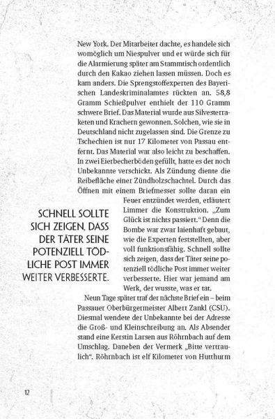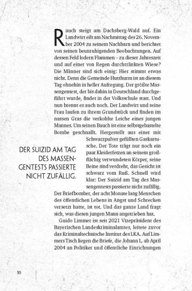 Ein hilfsbereiter Nachbar, der sich als skrupelloser Mörder entpuppt. Eine junge Mutter, die eine tödliche Entscheidung trifft. Ein Teenager, der ein grausames Verbrechen plant...Diese und viele weitere erschütternde Kriminalfälle aus Niederbayern und der Oberpfalz zeigen, dass das Böse oft dort lauert, wo man es am wenigsten erwartet. Journalistin und Gerichtsreporterin Isolde Stöcker-Gietl taucht in ihrem zweiten Buch erneut tief in die Abgründe der menschlichen Psyche ein und schildert wahre Kriminalfälle der Region - gelöste und ungelöste. Dabei beleuchtet die Autorin mit viel Feingefühl die Hintergründe der Taten und lässt Experten zu Wort kommen. Im Vordergrund stehen nicht die Grausamkeiten der Verbrechen, sondern vielmehr die Menschen, die involviert waren.