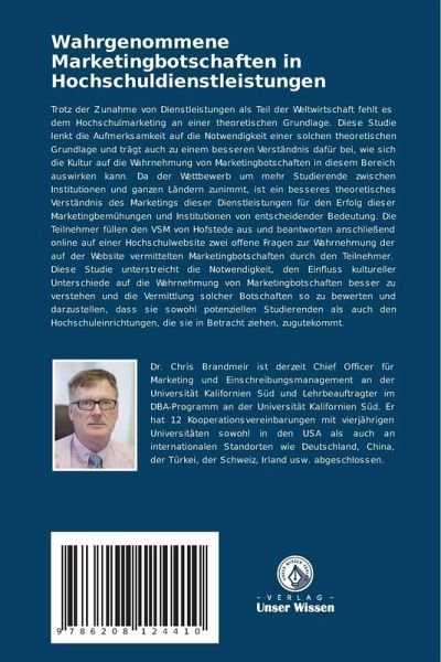 Trotz der Zunahme von Dienstleistungen als Teil der Weltwirtschaft fehlt es dem Hochschulmarketing an einer theoretischen Grundlage. Diese Studie lenkt die Aufmerksamkeit auf die Notwendigkeit einer solchen theoretischen Grundlage und trägt auch zu einem besseren Verständnis dafür bei, wie sich die Kultur auf die Wahrnehmung von Marketingbotschaften in diesem Bereich auswirken kann. Da der Wettbewerb um mehr Studierende zwischen Institutionen und ganzen Ländern zunimmt, ist ein besseres theoretisches Verständnis des Marketings dieser Dienstleistungen für den Erfolg dieser Marketingbemühungen und Institutionen von entscheidender Bedeutung. Die Teilnehmer füllen den VSM von Hofstede aus und beantworten anschließend online auf einer Hochschulwebsite zwei offene Fragen zur Wahrnehmung der auf der Website vermittelten Marketingbotschaften durch den Teilnehmer. Diese Studie unterstreicht die Notwendigkeit, den Einfluss kultureller Unterschiede auf die Wahrnehmung von Marketingbotschaften besser zu verstehen und die Vermittlung solcher Botschaften so zu bewerten und darzustellen, dass sie sowohl potenziellen Studierenden als auch den Hochschuleinrichtungen, die sie in Betracht ziehen, zugutekommt.