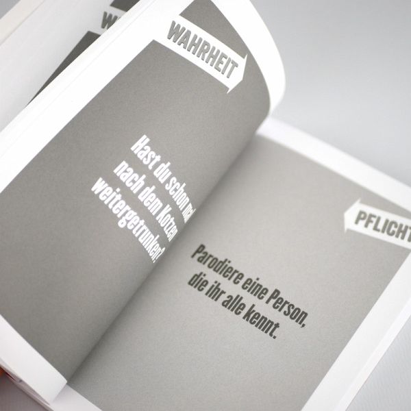 »Worum beneidest du den Mitspieler, der dir gegenübersitzt?« »Zieh dich bis auf die Unterwäsche aus und bleibe so bis zum Ende des Spiels«