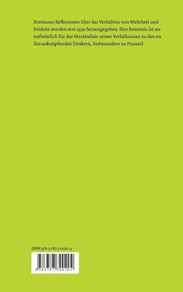 Brentanos Reflexionen über das Verhältnis von Wahrheit und Evidenz wurden erst 1930 herausgegeben. Ihre Kenntnis ist unentbehrlich für das Verständnis seines Verhältnisses zu den an ihn anknüpfenden Denkern, insbesondere zu Husserl.